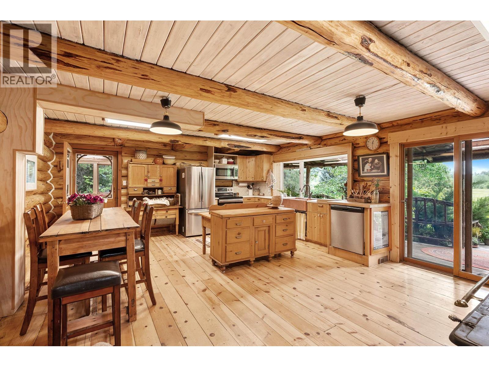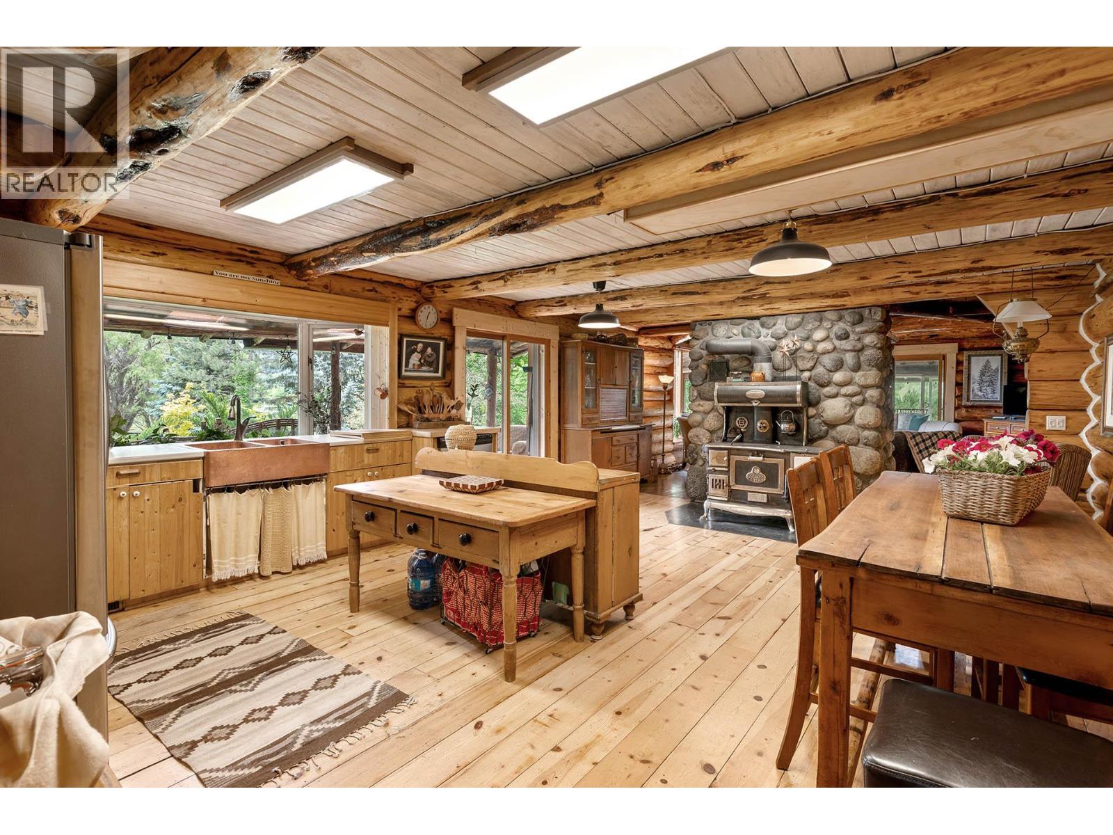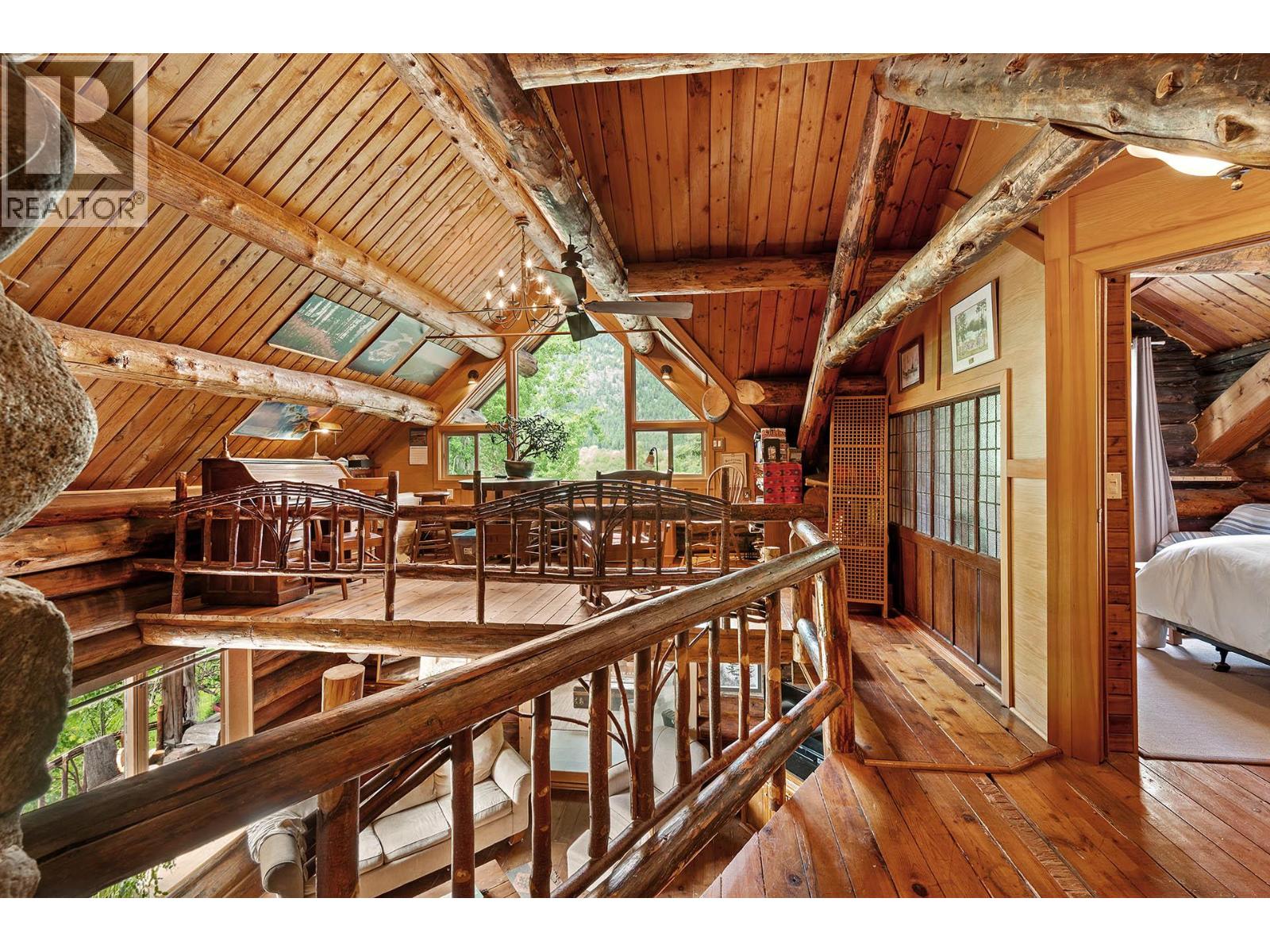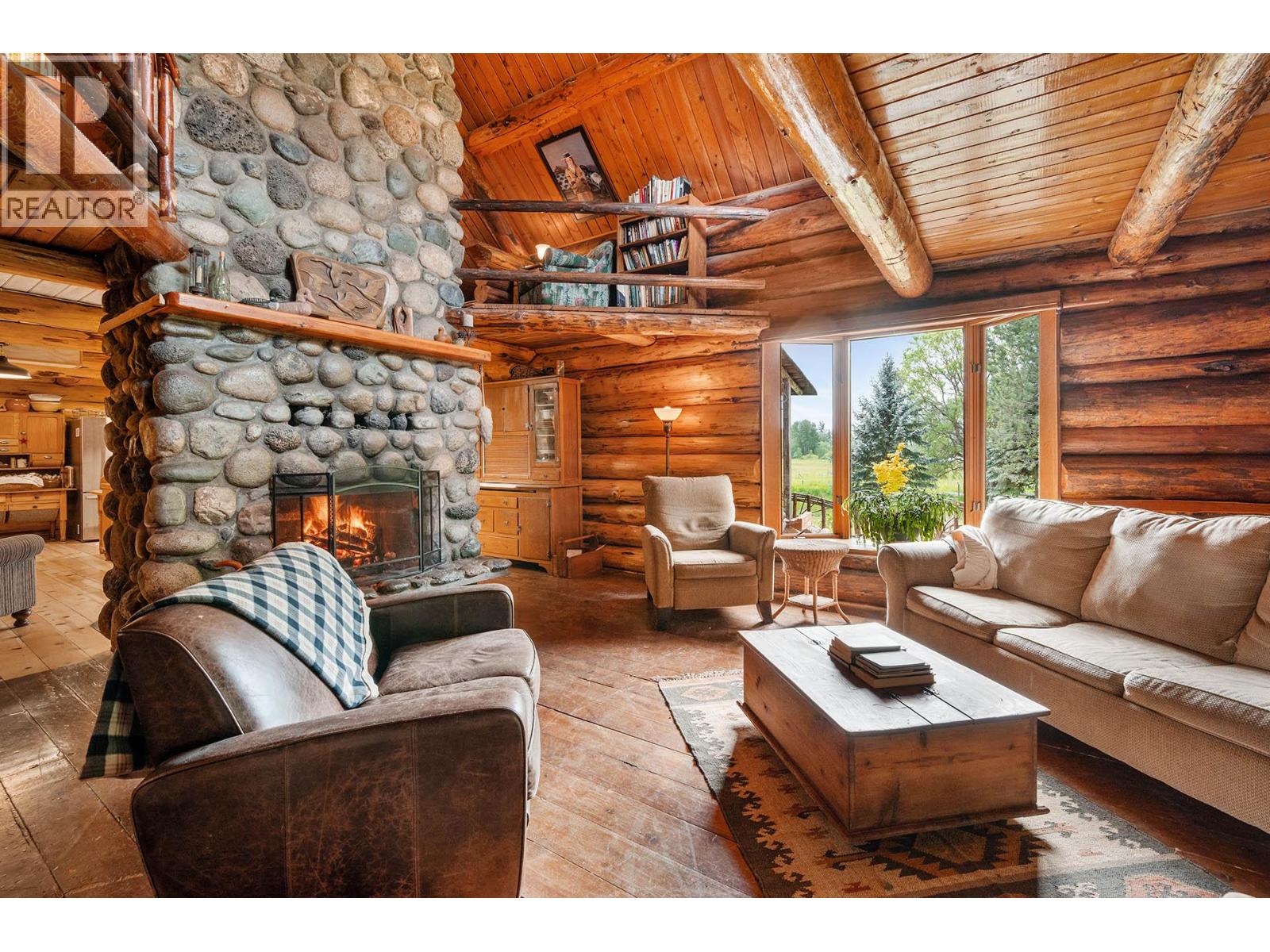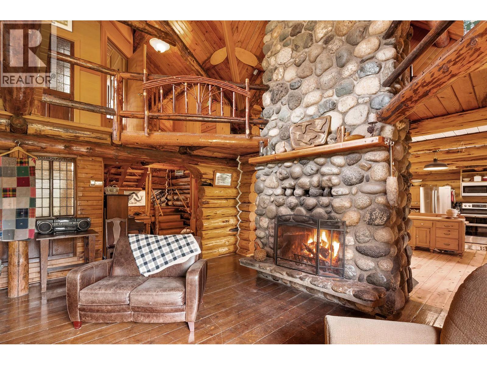 Discover a rare 80+ acre escape, with over a mile of riverfront property on the North Thompson, only 30 minutes from the heart of Kamloops. This one-of-a-kind property blends rustic charm with modern versatility—featuring a handcrafted log home, detached double garage, log guesthouse/shop, two waterfront cabins, and an RV pad. The grounds are equally impressive with fertile pasture, garden plots, greenhouse, and a peaceful pond. The log home is warm and inviting, with a spacious kitchen and dining area flowing seamlessly into the living room anchored by a striking stone wood burning fireplace. A sun-filled porch, full bathroom, and laundry make the main floor functional and comfortable. Upstairs offers a cozy retreat with the primary bedroom and ensuite, a second bedroom with 2pc ensuite, and a loft office overlooking the property. Potential for a 3rd bedroom. The walkout lower level is perfect for family gatherings and extra storage. Whether you dream of a hobby farm, private family compound, or a quiet riverside retreat, this property opens the door to endless possibilities. (id:4069)
