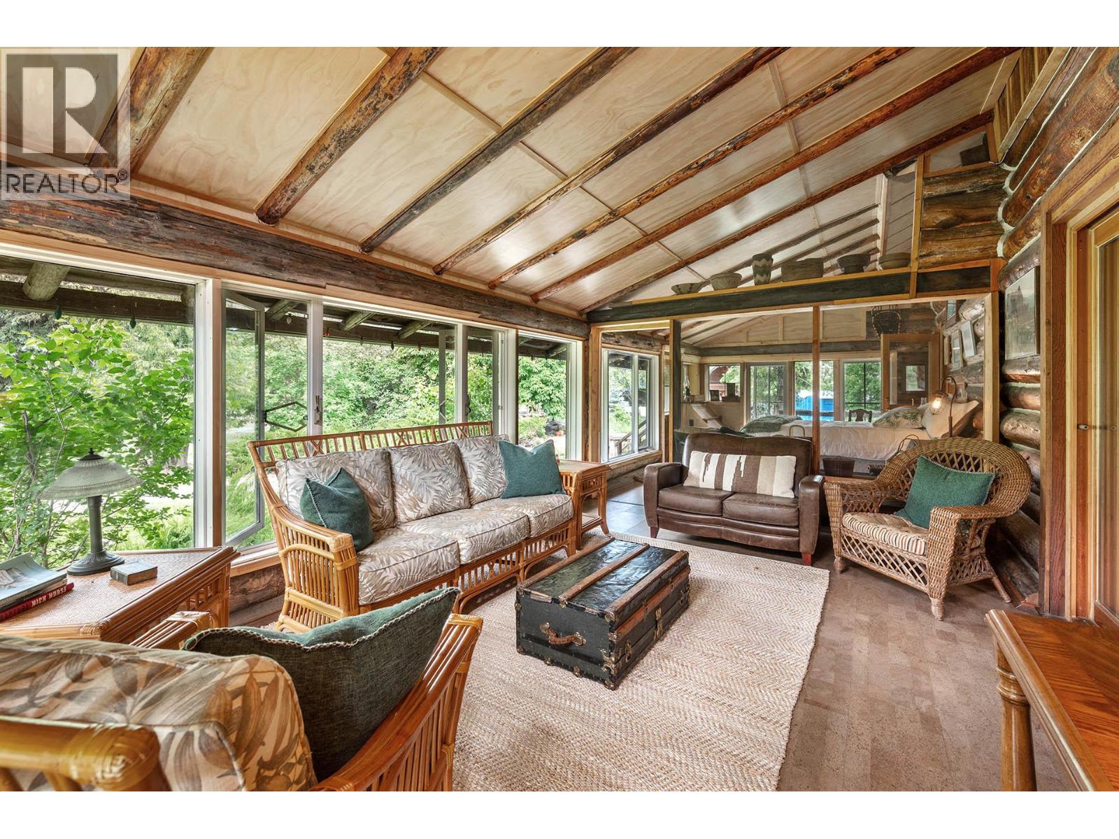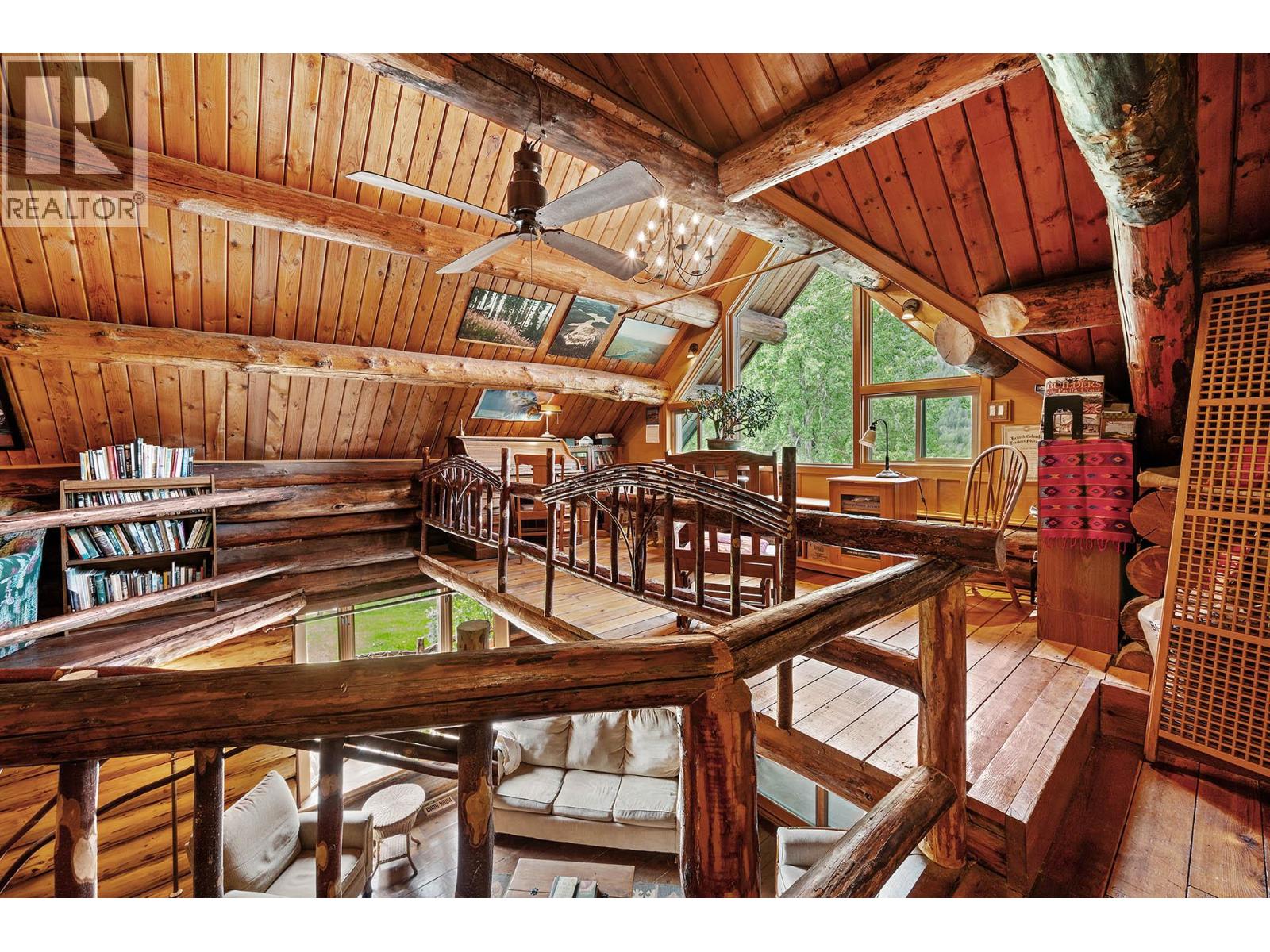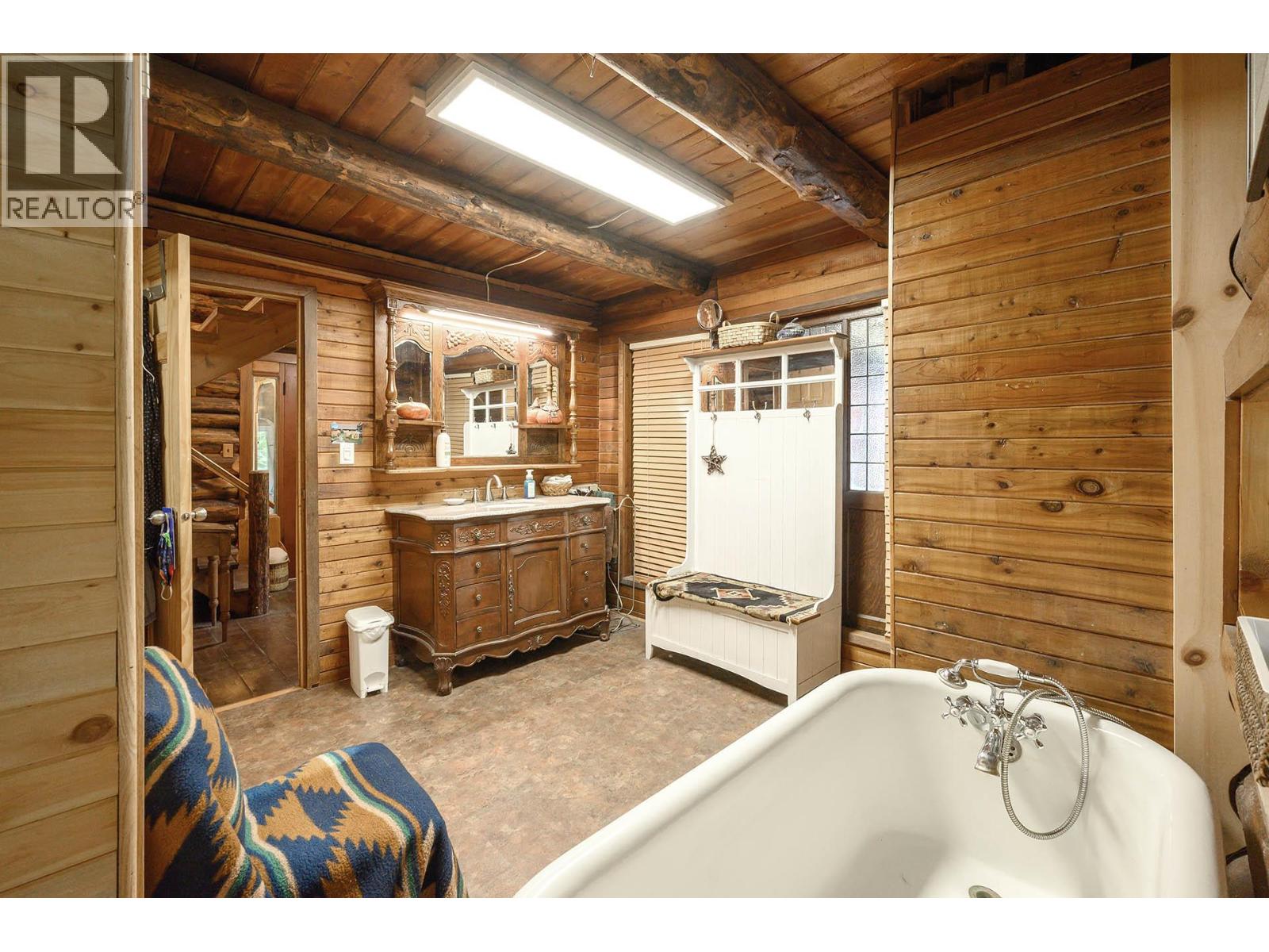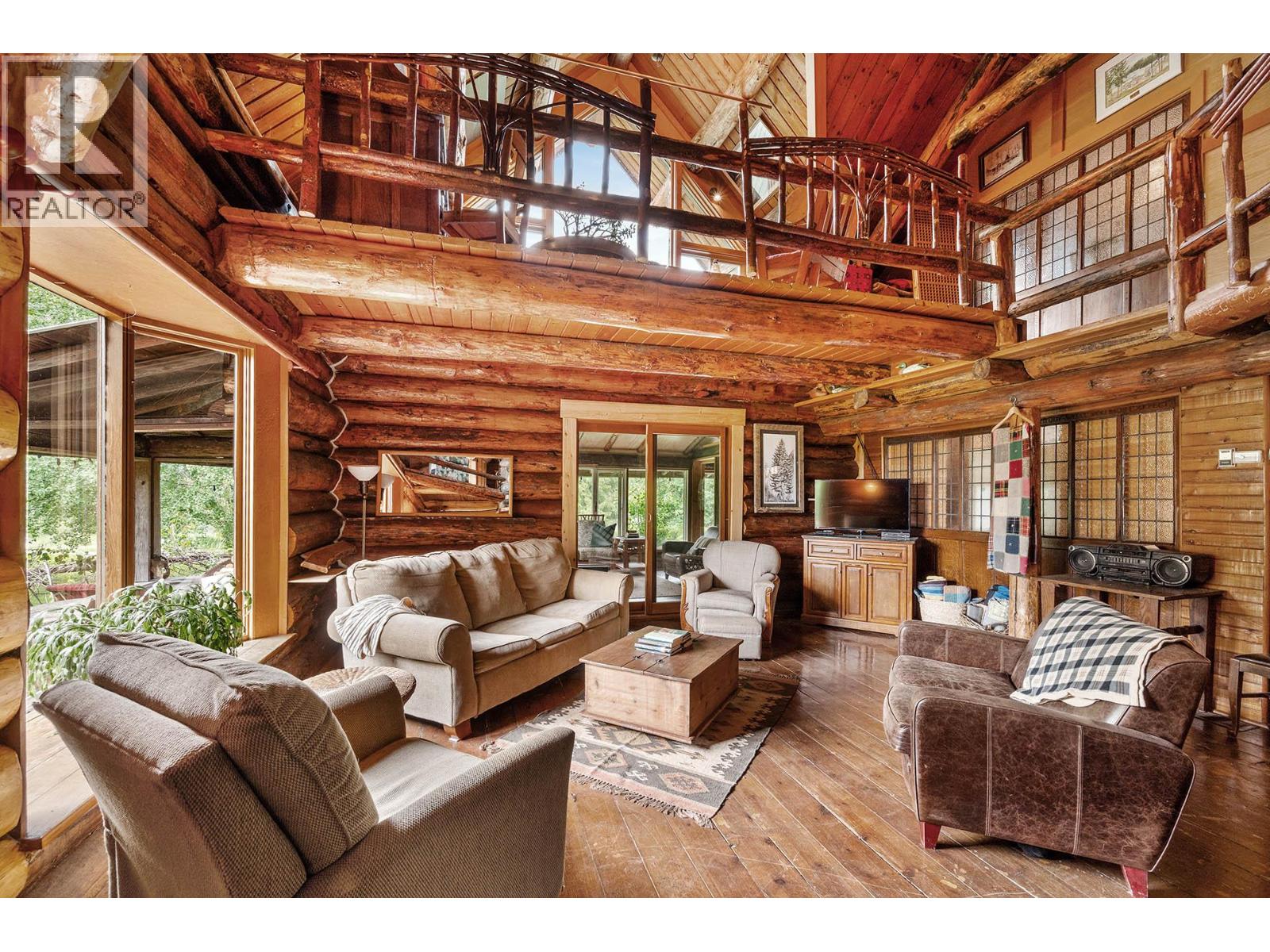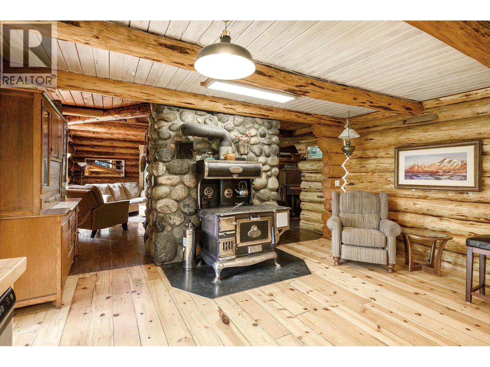 Discover a rare 80+ acre escape, with over a mile of riverfront property on the North Thompson, only 30 minutes from the heart of Kamloops. This one-of-a-kind property blends rustic charm with modern versatility—featuring a handcrafted log home, detached double garage, log guesthouse/shop, two waterfront cabins, and an RV pad. The grounds are equally impressive with fertile pasture, garden plots, greenhouse, and a peaceful pond. The log home is warm and inviting, with a spacious kitchen and dining area flowing seamlessly into the living room anchored by a striking stone wood burning fireplace. A sun-filled porch, full bathroom, and laundry make the main floor functional and comfortable. Upstairs offers a cozy retreat with the primary bedroom and ensuite, a second bedroom with 2pc ensuite, and a loft office overlooking the property. Potential for a 3rd bedroom. The walkout lower level is perfect for family gatherings and extra storage. Whether you dream of a hobby farm, private family compound, or a quiet riverside retreat, this property opens the door to endless possibilities. (id:4069)