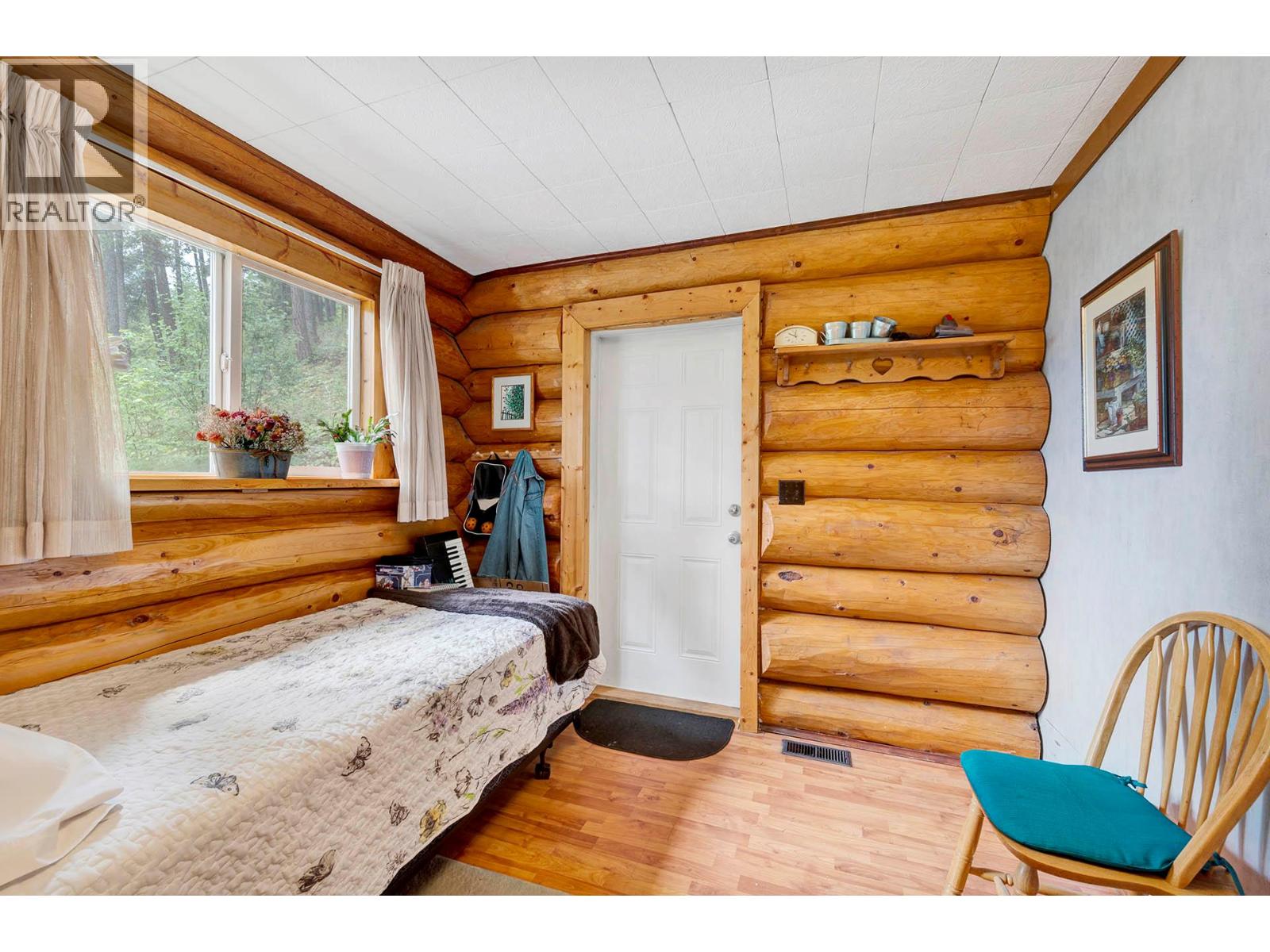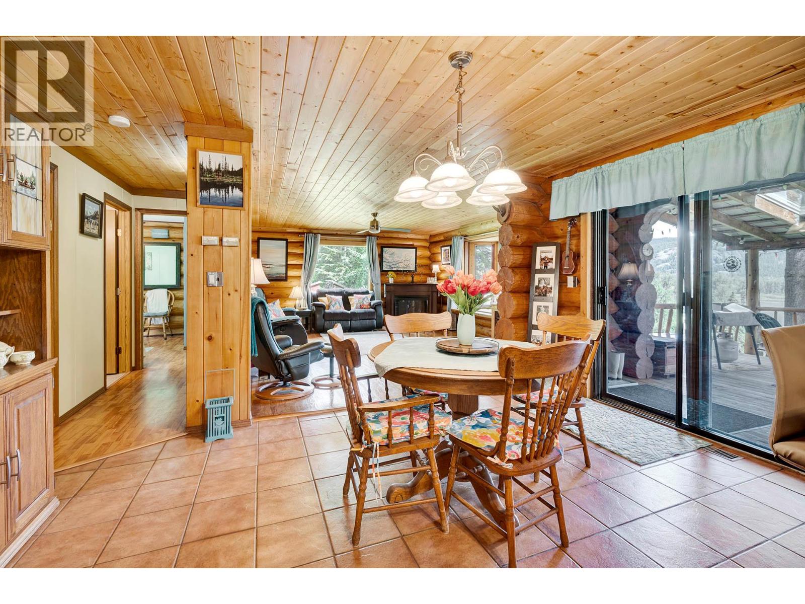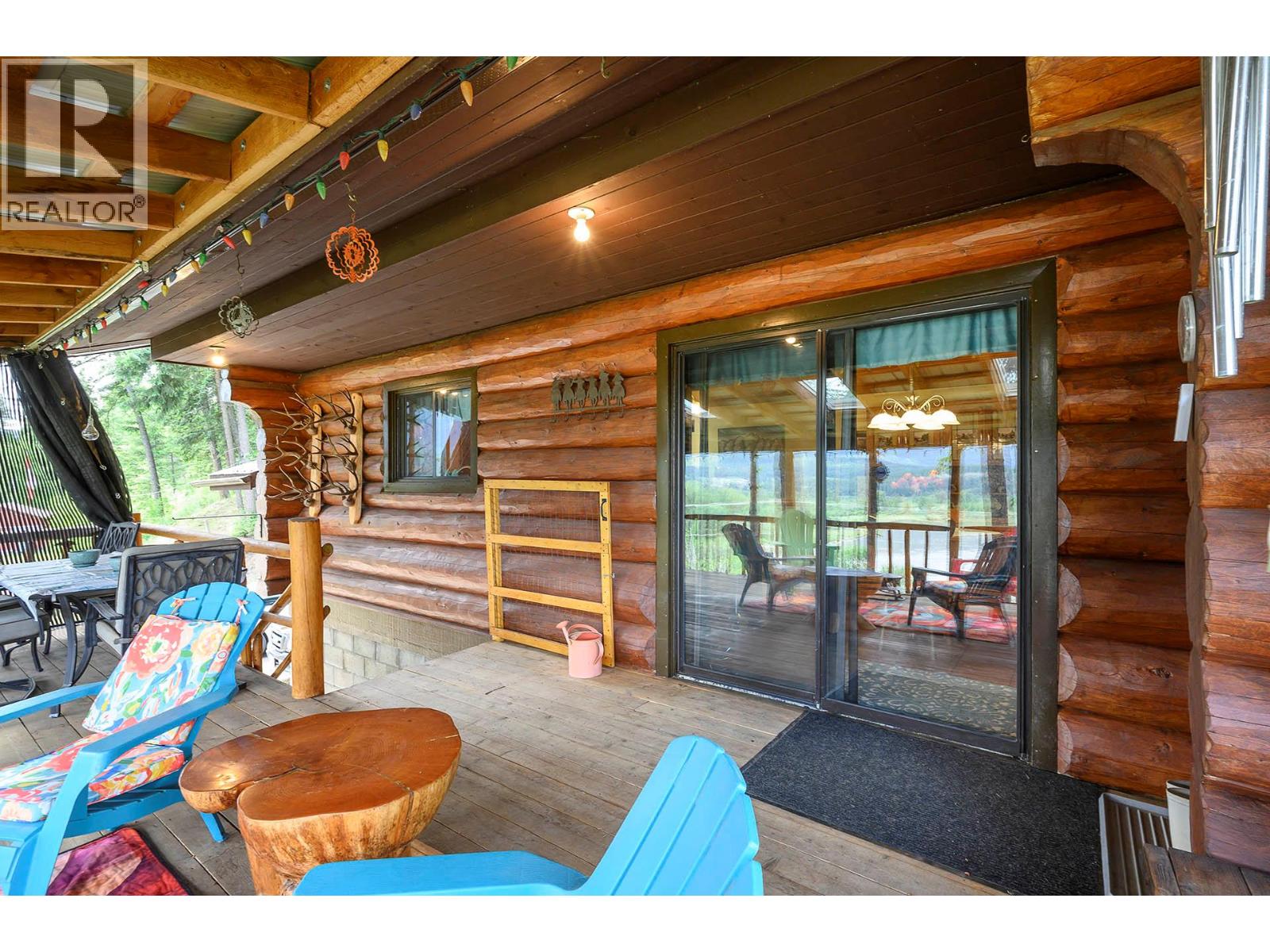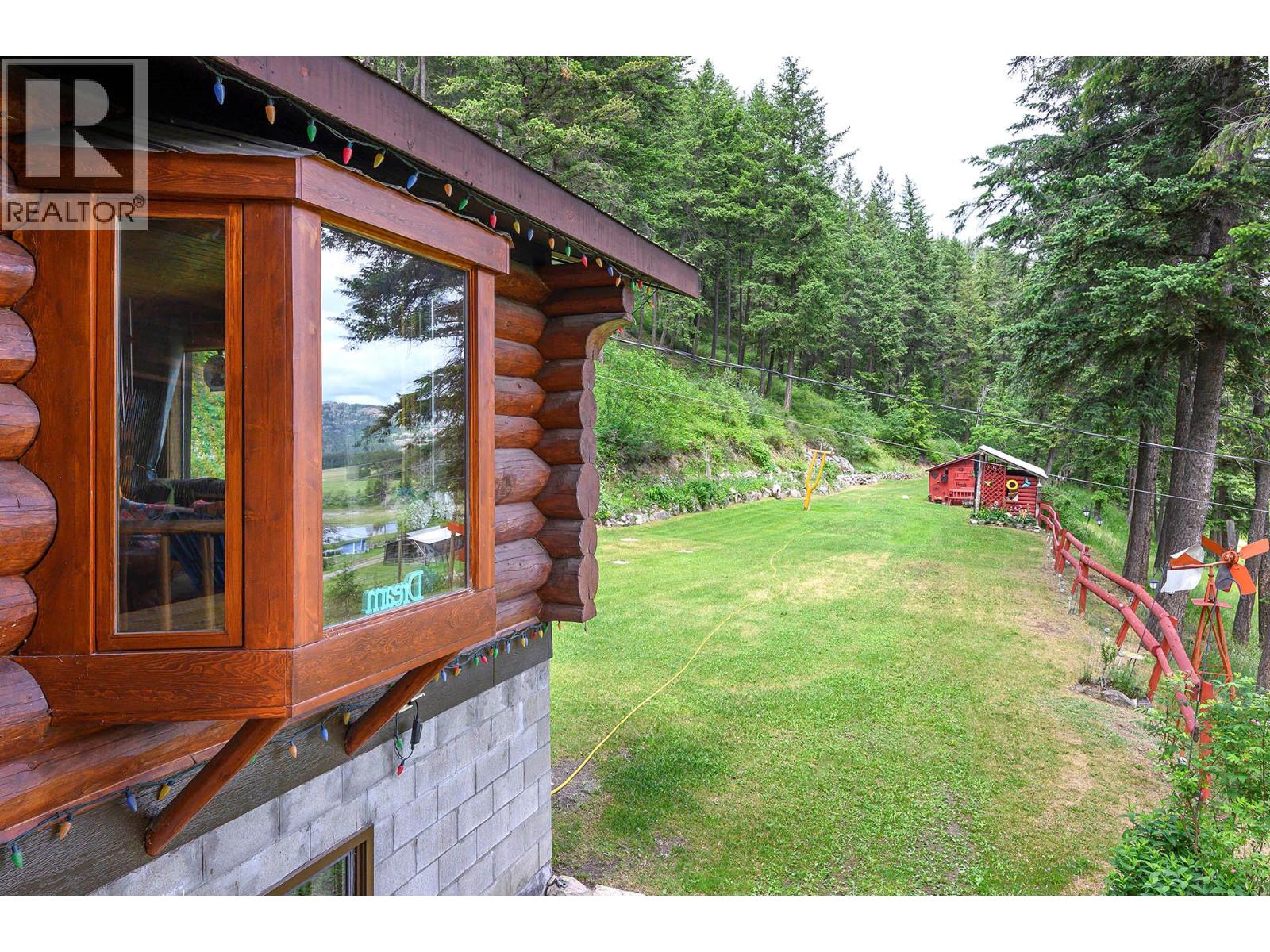 Private acreage with lovely river views featuring a custom log home with covered deck perched up on a nicely treed 9.88 acres. This well cared for home boasts a spacious main floor layout offering a bright open concept kitchen that leads into the dining room & cozy living room with plenty of windows & access to the front covered deck. Complete with 3 good sized bedrooms on the main floor including one with an ensuite bathroom, & a full guest bathroom. The lower level features plenty of storage, the mechanical room with laundry, a large unfinished space for your ideas & a separate 1 bedroom in-law suite with a separate entrance. This property is neat as a pin with beautiful lawn & perennial garden space with a storage shed, & potting self, as well as a separate detached shop & covered outbuilding storage. The property slopes up the hillside to another bench with plenty of space to create trails or develop for your ideas. Plenty of parking including the covered carport. Call today for a full info package or private viewing! (id:4069)