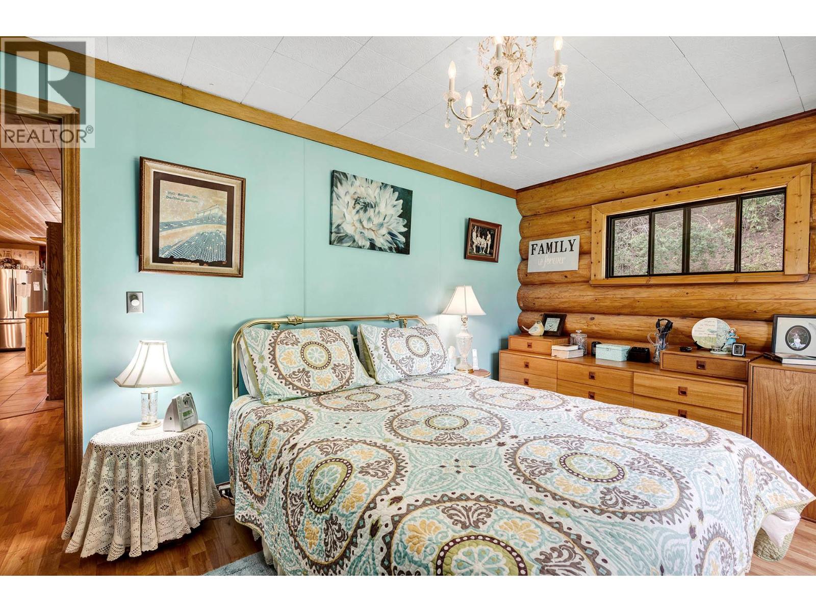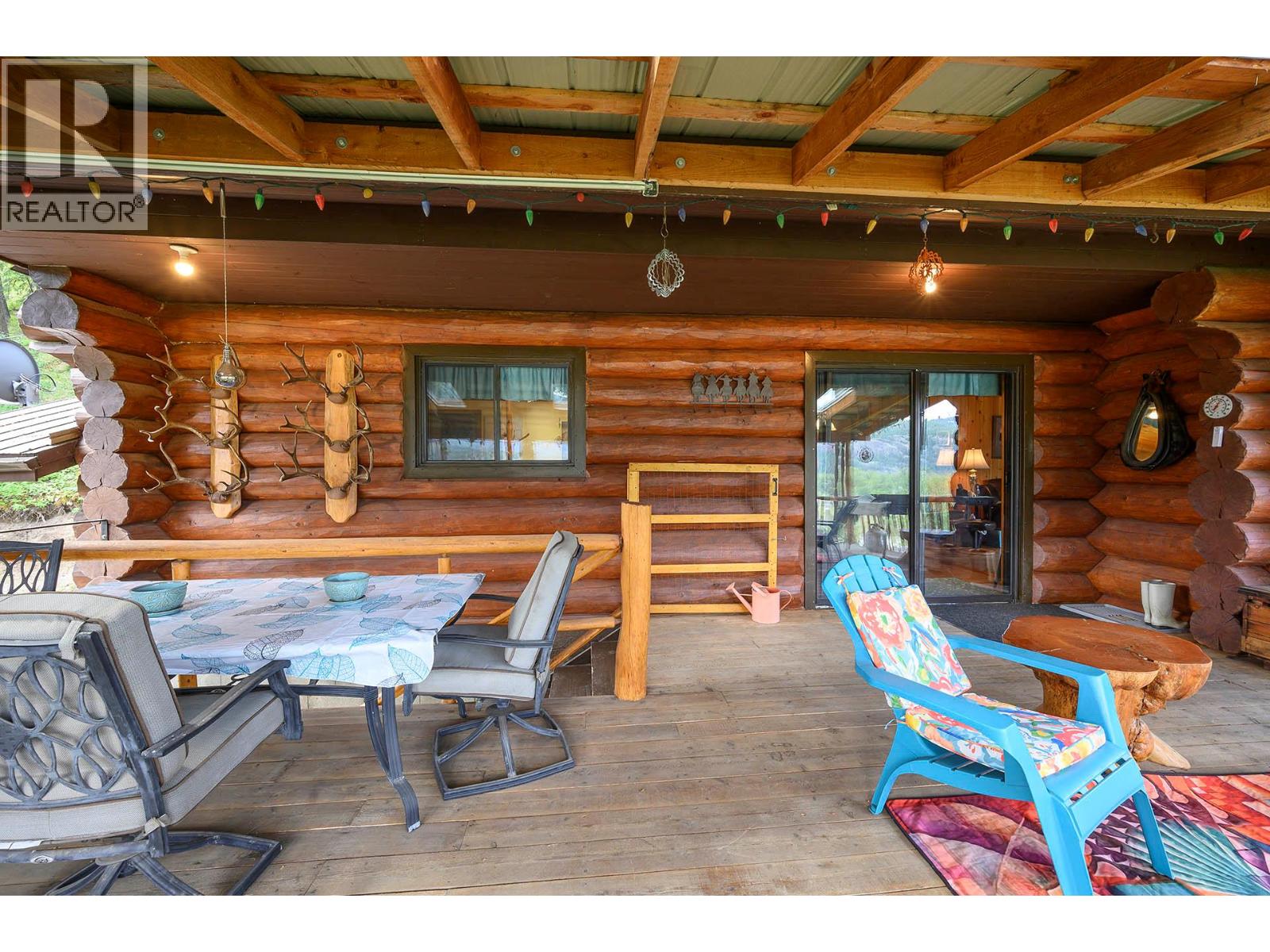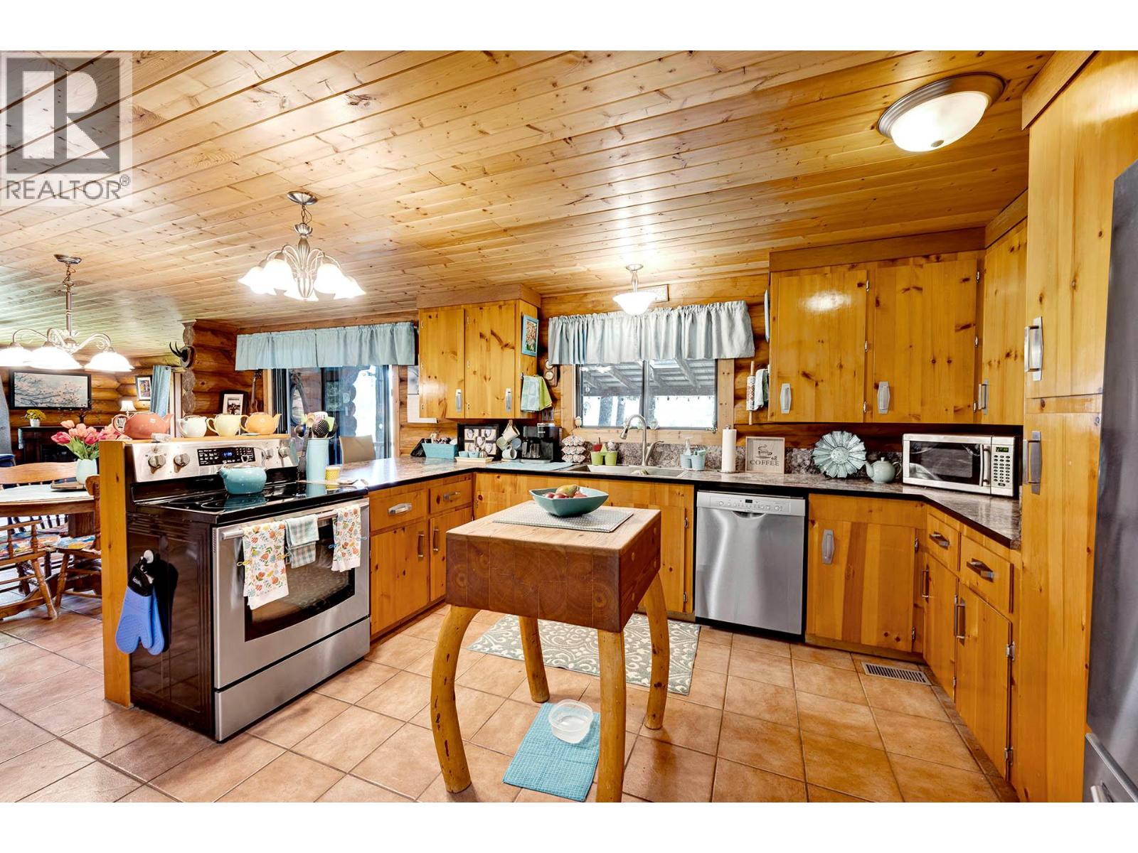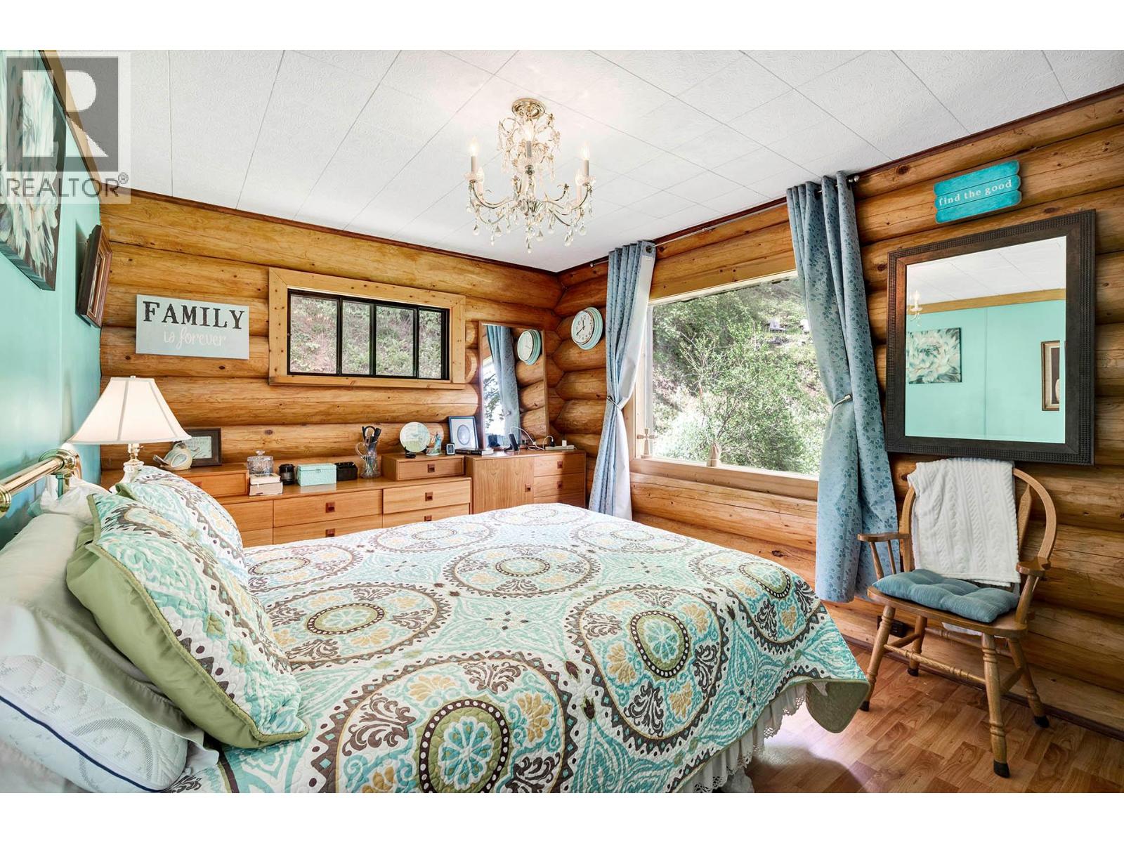 Private acreage with lovely river views featuring a custom log home with covered deck perched up on a nicely treed 9.88 acres. This well cared for home boasts a spacious main floor layout offering a bright open concept kitchen that leads into the dining room & cozy living room with plenty of windows & access to the front covered deck. Complete with 3 good sized bedrooms on the main floor including one with an ensuite bathroom, & a full guest bathroom. The lower level features plenty of storage, the mechanical room with laundry, a large unfinished space for your ideas & a separate 1 bedroom in-law suite with a separate entrance. This property is neat as a pin with beautiful lawn & perennial garden space with a storage shed, & potting self, as well as a separate detached shop & covered outbuilding storage. The property slopes up the hillside to another bench with plenty of space to create trails or develop for your ideas. Plenty of parking including the covered carport. Call today for a full info package or private viewing! (id:4069)