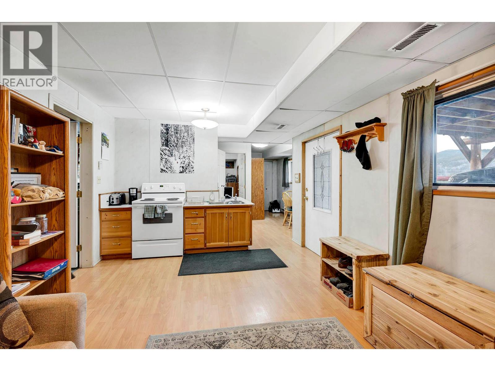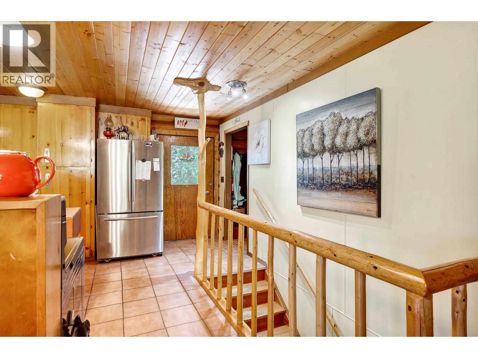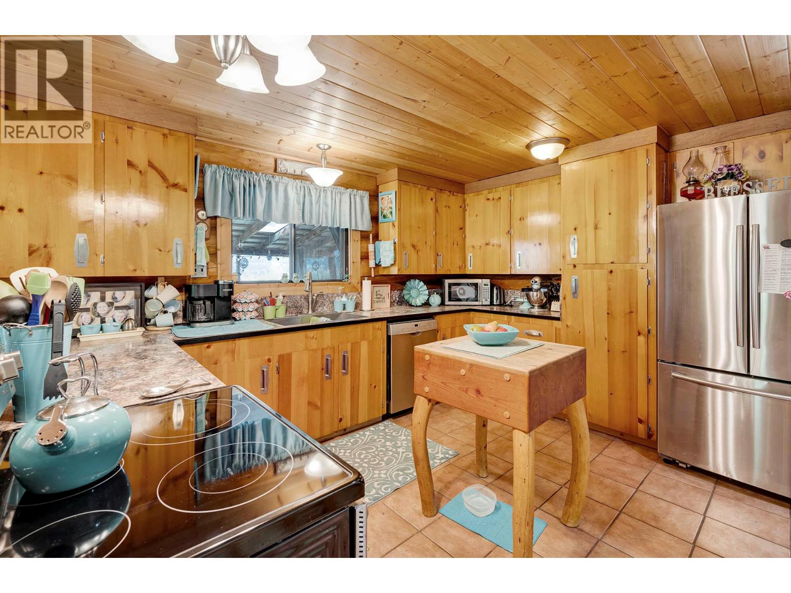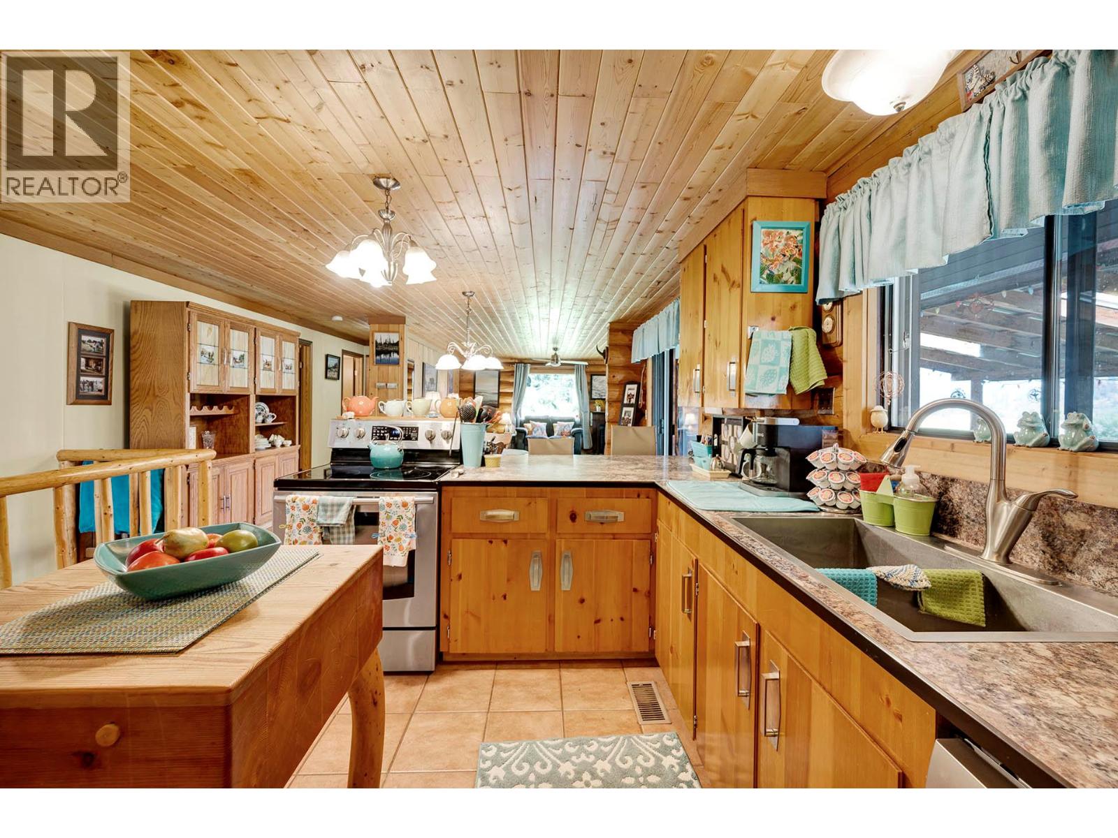 Private acreage with lovely river views featuring a custom log home with covered deck perched up on a nicely treed 9.88 acres. This well cared for home boasts a spacious main floor layout offering a bright open concept kitchen that leads into the dining room & cozy living room with plenty of windows & access to the front covered deck. Complete with 3 good sized bedrooms on the main floor including one with an ensuite bathroom, & a full guest bathroom. The lower level features plenty of storage, the mechanical room with laundry, a large unfinished space for your ideas & a separate 1 bedroom in-law suite with a separate entrance. This property is neat as a pin with beautiful lawn & perennial garden space with a storage shed, & potting self, as well as a separate detached shop & covered outbuilding storage. The property slopes up the hillside to another bench with plenty of space to create trails or develop for your ideas. Plenty of parking including the covered carport. Call today for a full info package or private viewing! (id:4069)